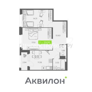 Продажа квартиры: 2-комн., 59.95 кв.м, 12.52 млн.руб. (id:160006)
