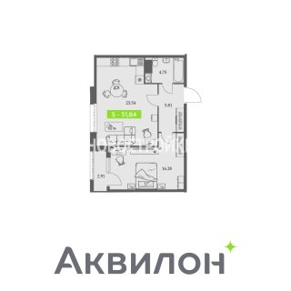 1-комн.Площадь: 51.84м2