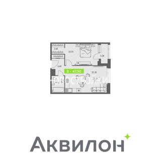 1-комн.Площадь: 47.3м2