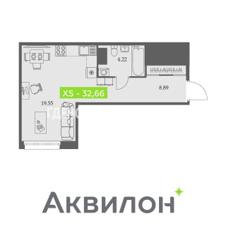 СтудияПлощадь: 32.66м2