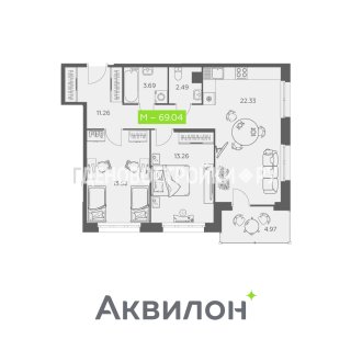 2-комн.Площадь: 69.04м2