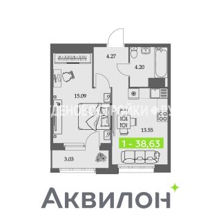 Продажа квартиры: 1-комн., 38.63 кв.м, 7.44 млн.руб. (id:172809)