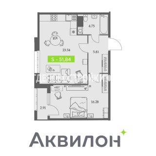 1-комн.Площадь: 51.84м2