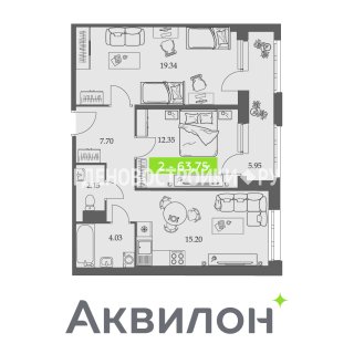 2-комн.Площадь: 63.75м2
