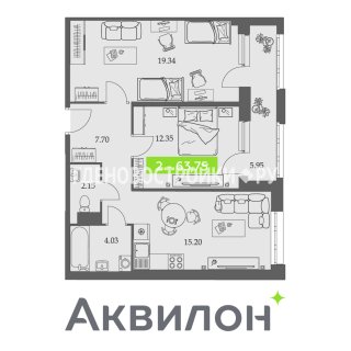 2-комн.Площадь: 63.75м2