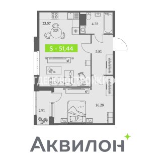 1-комн.Площадь: 51.44м2