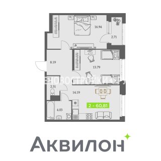 Продажа квартиры: 2-комн., 60.81 кв.м, 10.04 млн.руб. (id:172885)
