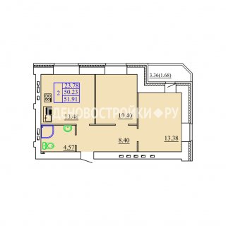 Продажа квартиры: 2-комн., 51.91 кв.м, 6.07 млн.руб. (id:168026)
