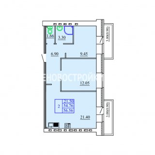 Продажа квартиры: 2-комн., 56.56 кв.м, 6.6 млн.руб. (id:168028)