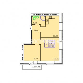 2-комн.Площадь: 50.05м2