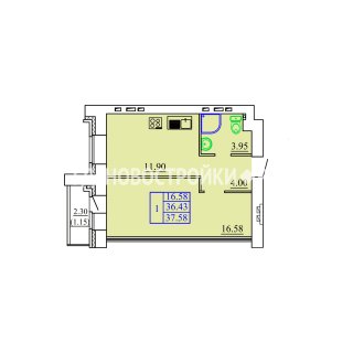Продажа квартиры: 1-комн., 37.58 кв.м, 4.5 млн.руб. (id:168267)