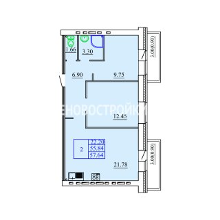Продажа квартиры: 2-комн., 57.64 кв.м, 6.73 млн.руб. (id:168287)