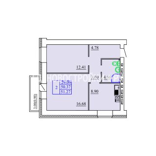 2-комн.Площадь: 51.27м2