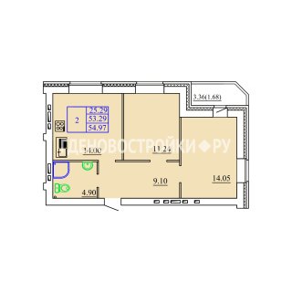 2-комн.Площадь: 54.93м2