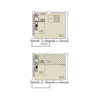 СтудияПлощадь: 57.5м2