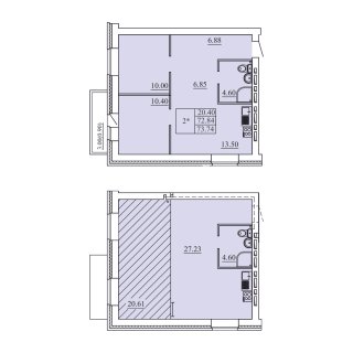 2-комн.Площадь: 73.74м2