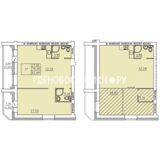 1-комн.Площадь: 83.89м2