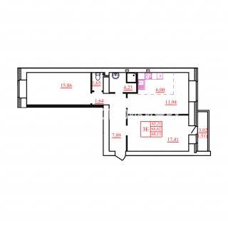 2-комн.Площадь: 68.13м2