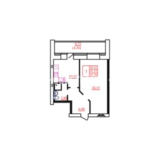 1-комн.Площадь: 45.88м2