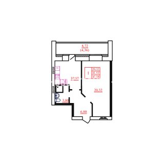 1-комн.Площадь: 45.88м2