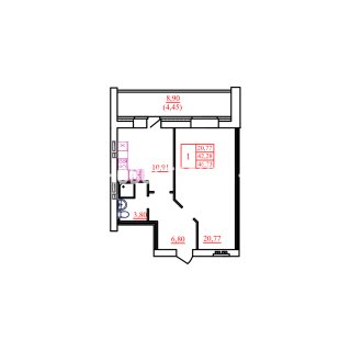 1-комн.Площадь: 46.73м2