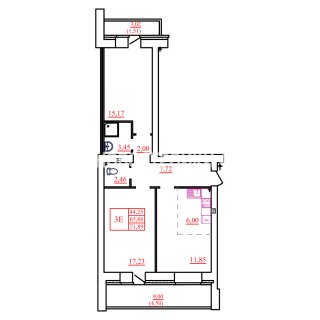 Евро-3-комн.Площадь: 71.89м2