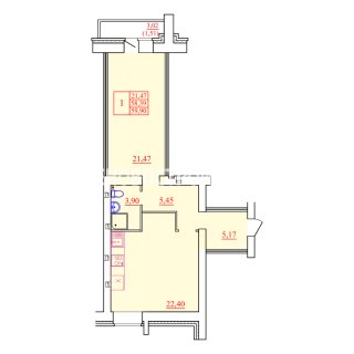 1-комн.Площадь: 59.9м2