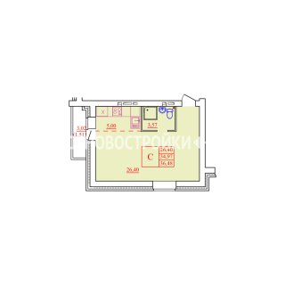 Продажа квартиры: 1-комн., 36.48 кв.м, 4.48 млн.руб. (id:167997)
