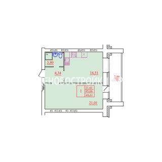 Продажа квартиры: 1-комн., 49.61 кв.м, 5.94 млн.руб. (id:169372)