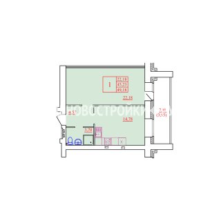 1-комн.Площадь: 49.18м2