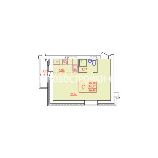 Продажа квартиры: Студия, 36.48 кв.м, 4.78 млн.руб. (id:169421)