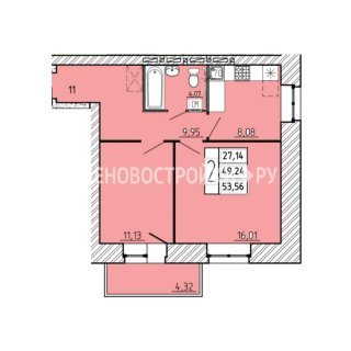 2-комн.Площадь: 53.56м2