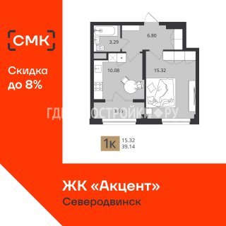 Продажа квартиры: 1-комн., 39.14 кв.м, 5.48 млн.руб. (id:174023)