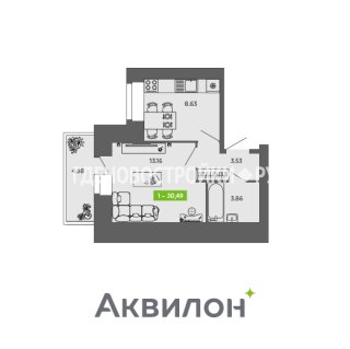 1-комн.Площадь: 30.49м2