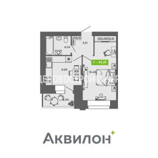 1-комн.Площадь: 34.39м2