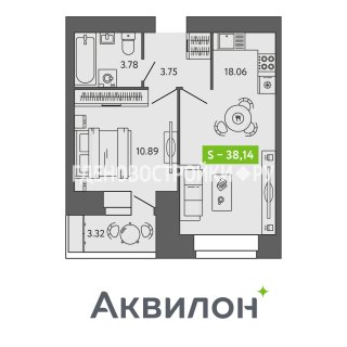 1-комн.Площадь: 38.2м2