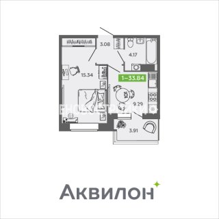 1-комн.Площадь: 33.84м2
