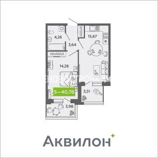 Продажа квартиры: 1-комн., 40.78 кв.м, 5.29 млн.руб. (id:147783)
