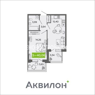 Продажа квартиры: 1-комн., 40.06 кв.м, 5.46 млн.руб. (id:147812)