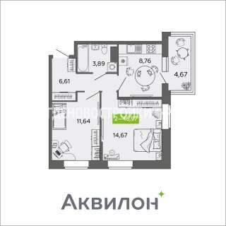 Продажа квартиры: 2-комн., 46.97 кв.м, 6.74 млн.руб. (id:163888)