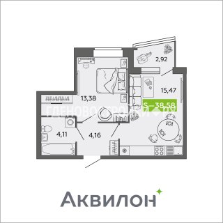 1-комн.Площадь: 38.58м2