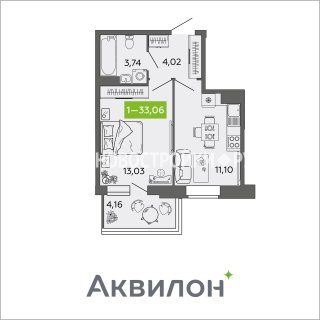 Продажа квартиры: 1-комн., 33.06 кв.м, 4.25 млн.руб. (id:170343)