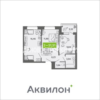 2-комн.Площадь: 51.51м2