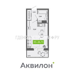 СтудияПлощадь: 26.73м2
