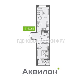 Продажа квартиры: 1-комн., 42.62 кв.м, 5.82 млн.руб. (id:156518)