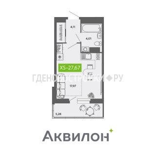 СтудияПлощадь: 27.67м2