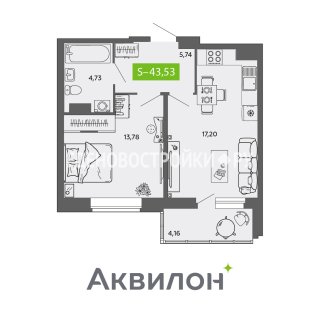 Продажа квартиры: 1-комн., 43.53 кв.м, 5.64 млн.руб. (id:160448)