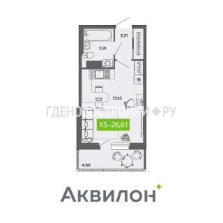 Продажа квартиры: Студия, 26.61 кв.м, 3.33 млн.руб. (id:173105)