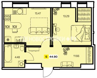 Продажа квартиры: 1-комн., 44.9 кв.м, 5.67 млн.руб. (id:147486)