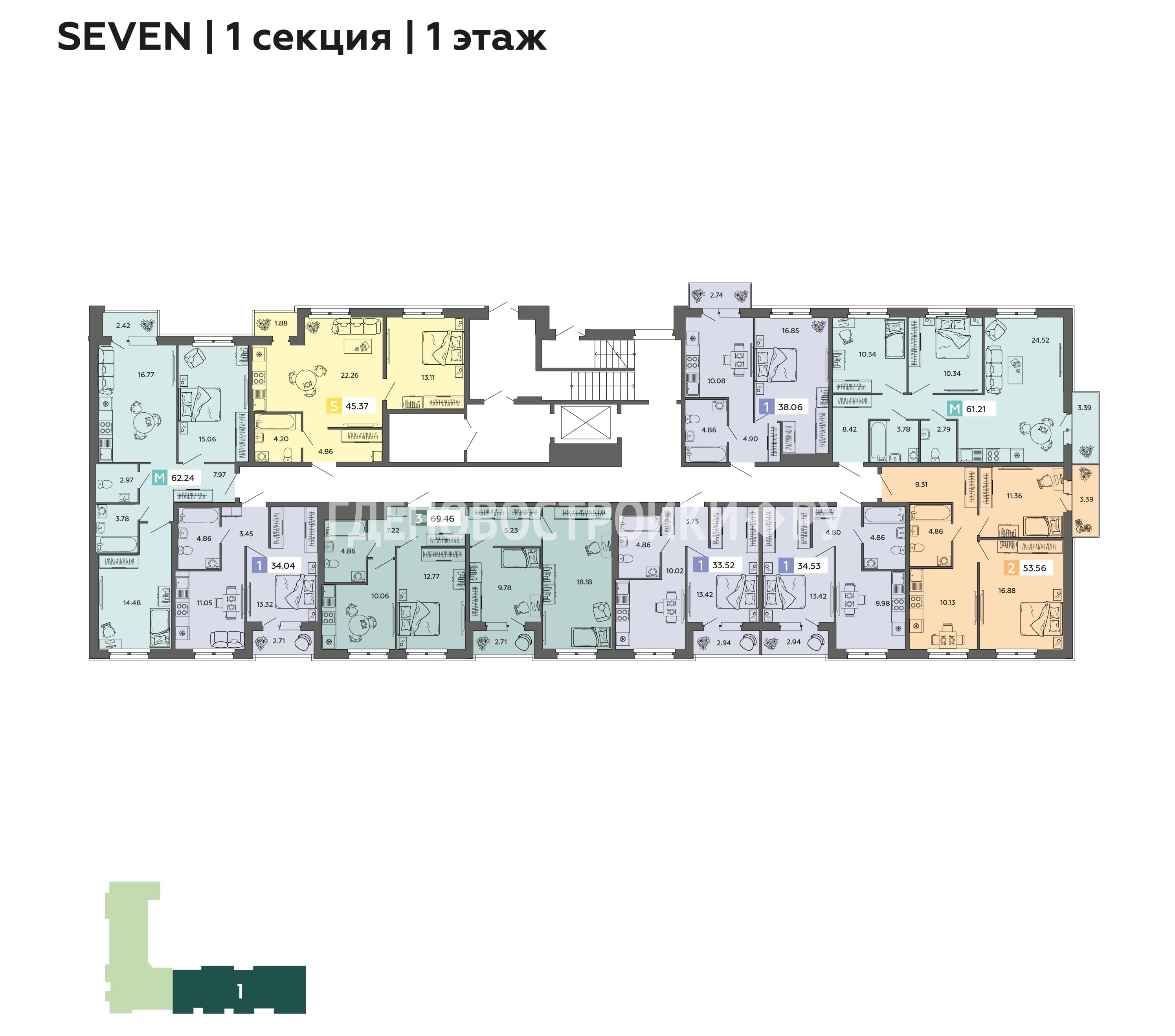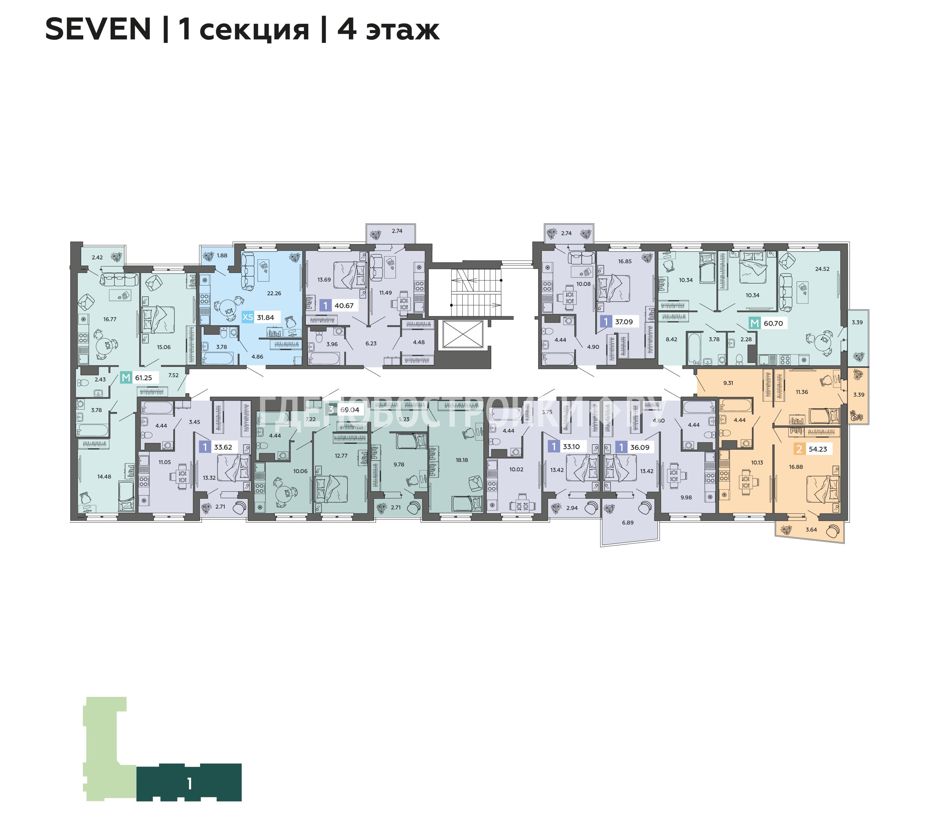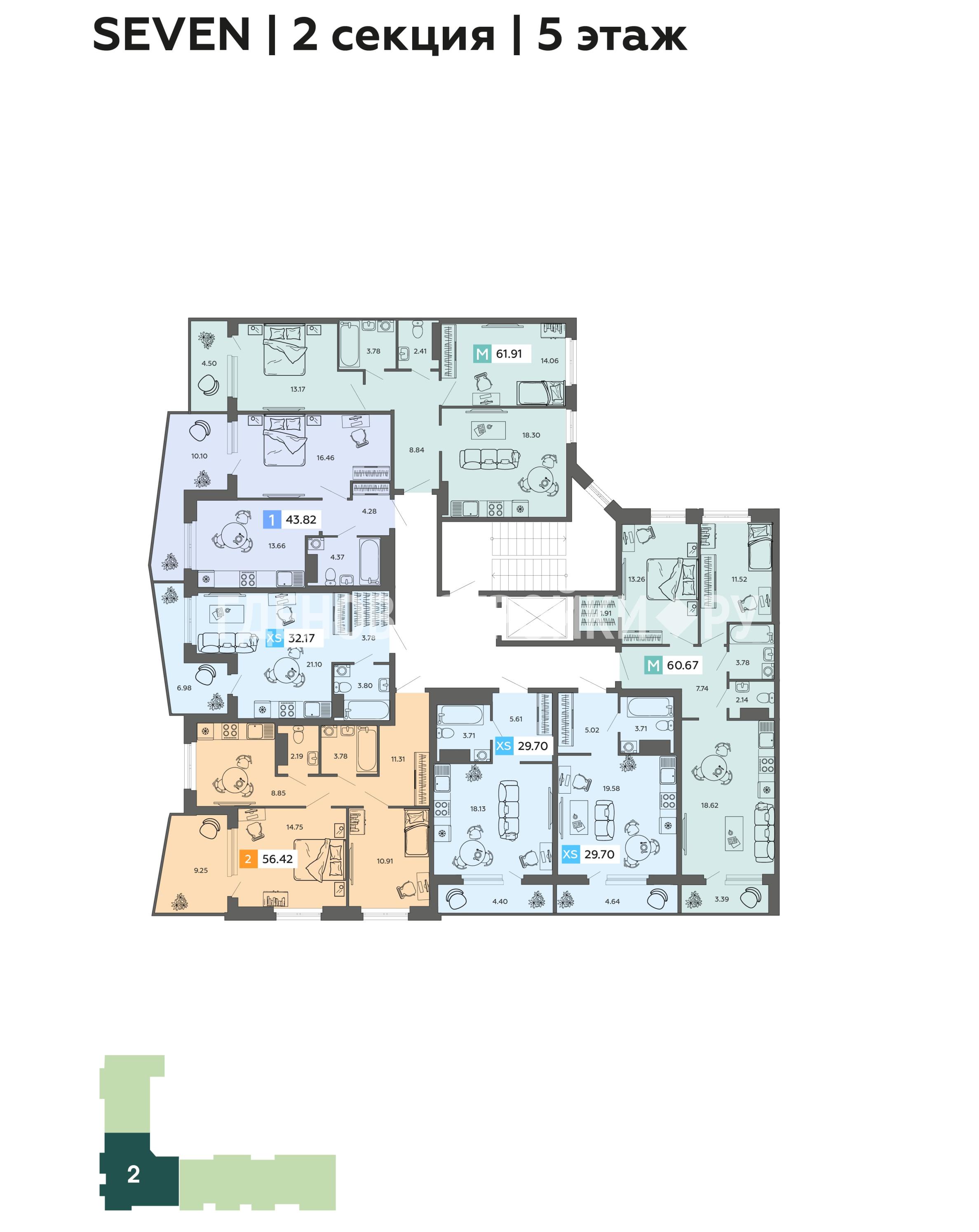| Студия | от 29.72 кв.м | от 4.27 млн. ₽ |